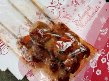 Firecracker lumpia) traveling vendor mounted on a motorcycle, sidoarjo, east java the name lumpia mercon (lit.